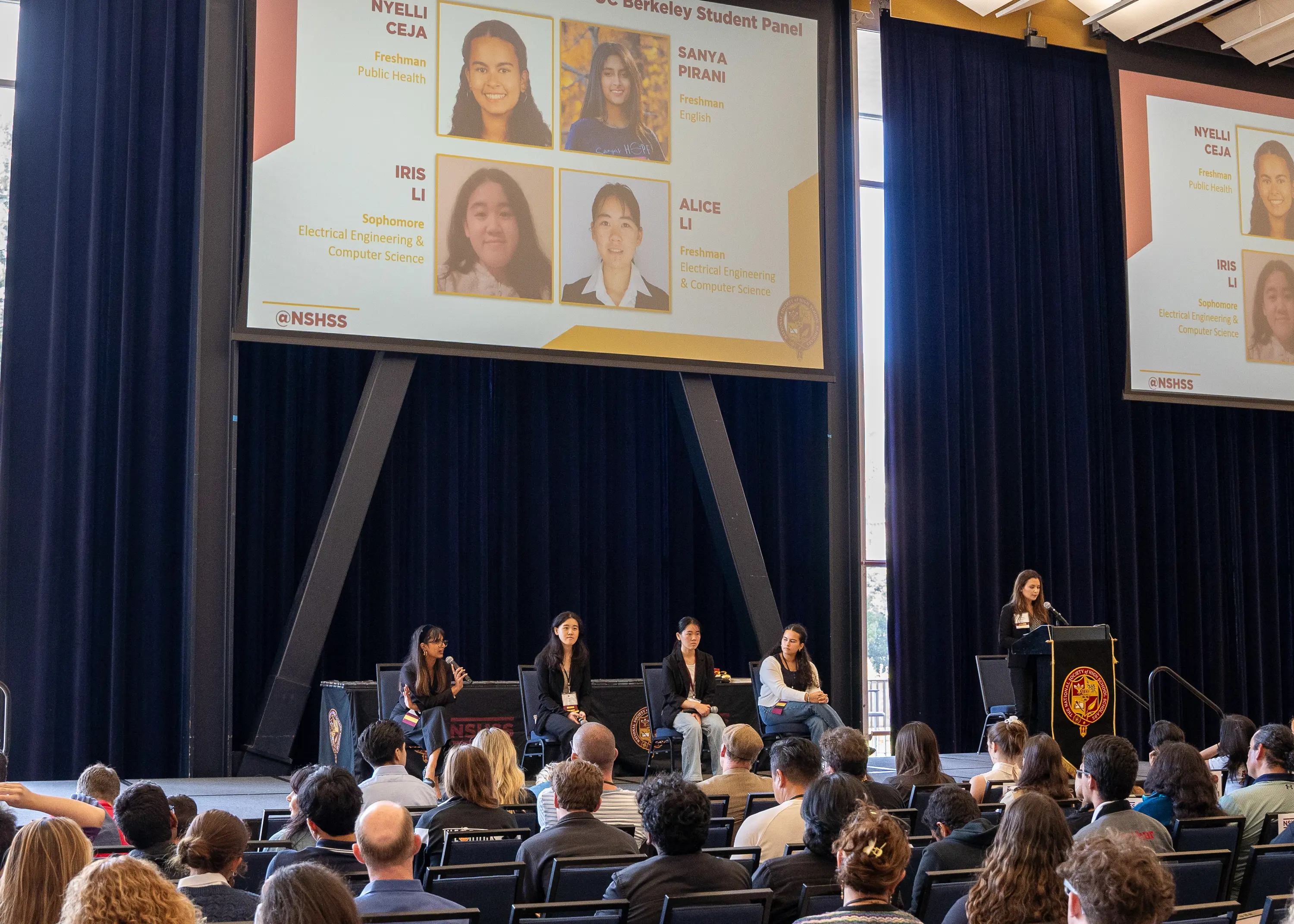 This one-day event included a networking breakfast, a helpful information session with Q&A from current UC Berkeley students, a College & Career Fair, and engaging educational sessions. The event concluded with the NSHSS Member Recognition Ceremony, where each member was honored and received an NSHSS medallion for their academic achievements!
