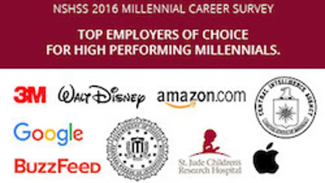 JUNE 13, 2016 (ATLANTA) – The 2016 National Society of High School Scholars (NSHSS) 9th Annual Millennial Career Survey uncovers the top employers selected by more than 13,000 high school students, college students and young professionals. NSHSS is an international honors organization helping to advance the goals and aspirations of high-achieving students. NSHSS partners with Hanover Research to conduct the survey to gain insight into the preferences and attitudes of high-achieving millennials, now the largest generation in today’s workforce.